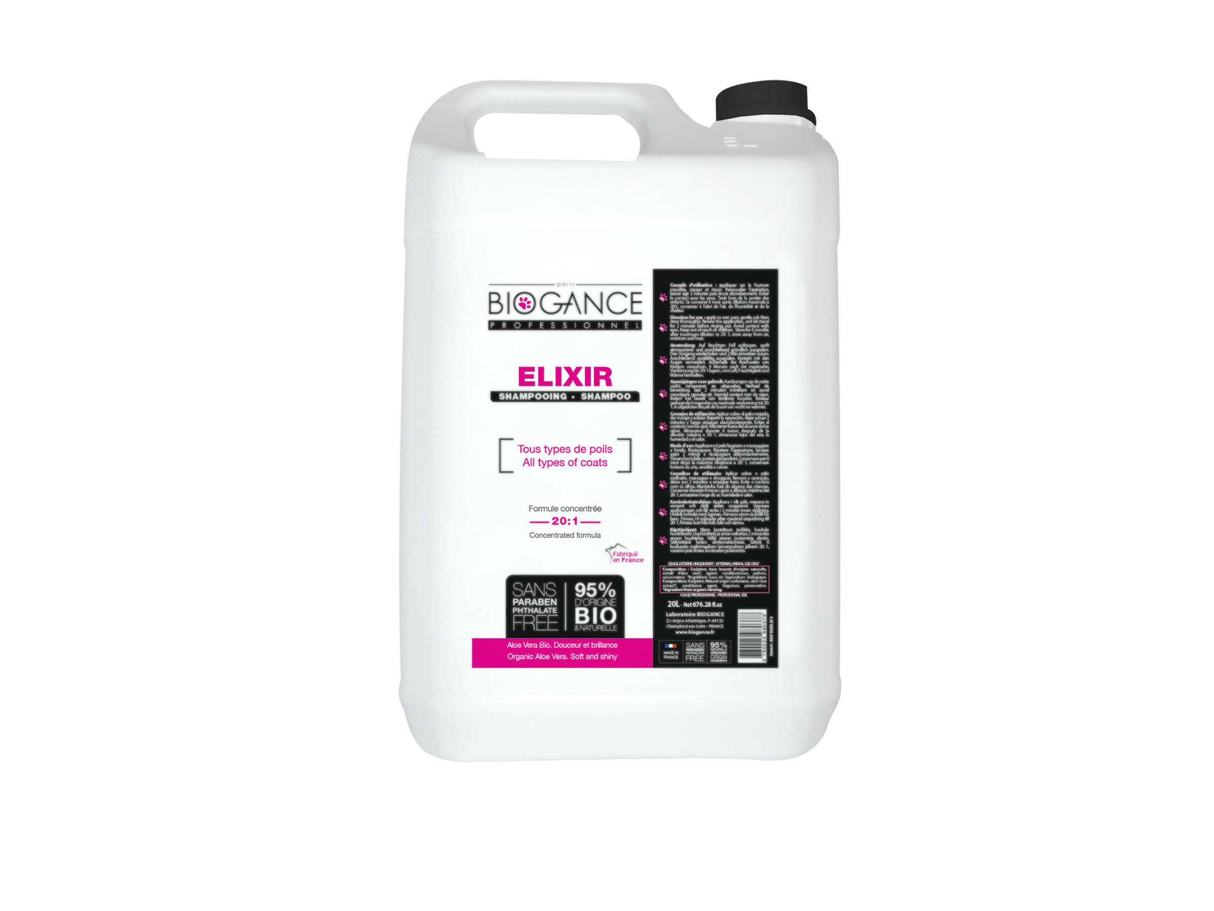 Biogance ELIXIR PRO Universele hondenshampoo is samengesteld uit 95% ingrediënten van biologische en natuurlijke oorsprong en is vrij van ftalaten, parabenen en fenoxyethanol.