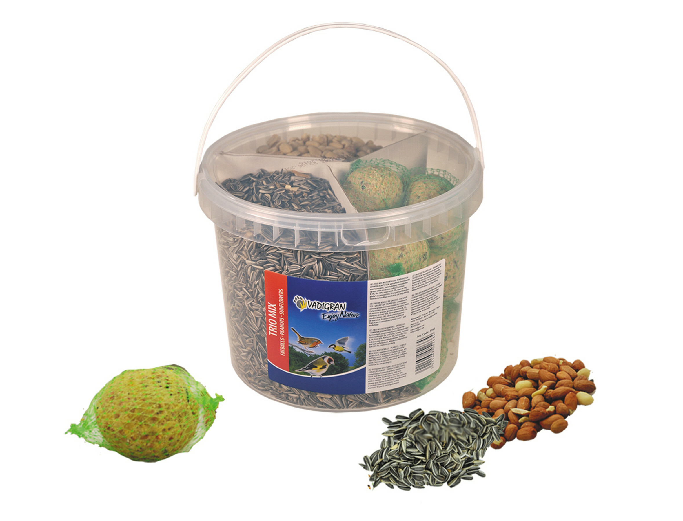 Lekkere mix van mezenbollen, pindanoten en zonnebloempitten