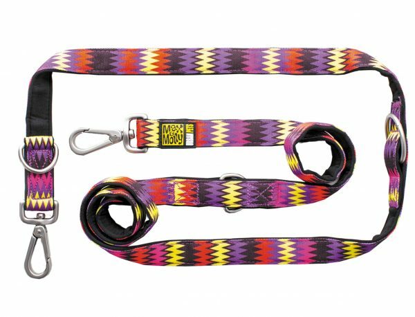 Multifunctionele hondenleiband die zich aan elke situatie aanpast tijdens een wandeling. Hier zijn 7 opties: 1m korte afstand; 1,3m medium afstand; 1,6m lange afstand, heupleiband, schouderleiband, dubbele leiband en tijdelijke aanlegketting.